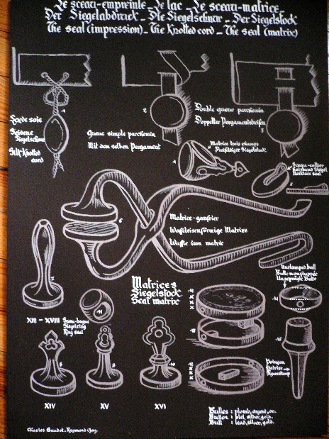 A partir du XI ième, XII ième siècle ils ne seront plus collés, mais de plus en plus souvent appendus à la charte, par des liens appelés lacs. Ceux-ci sont, bien entendu, inclus dans la masse de cire ou de métal.